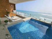 ...terraza con vista al mar y cortaviento de vidrio con patera. Dormitorio principal con cama Queen y base de cemento. Dormitorio secundario con cama Box de dos plazas. Cada dorm con baño completo y TV. Se vende totalmente amoblado y equipado con refrig...